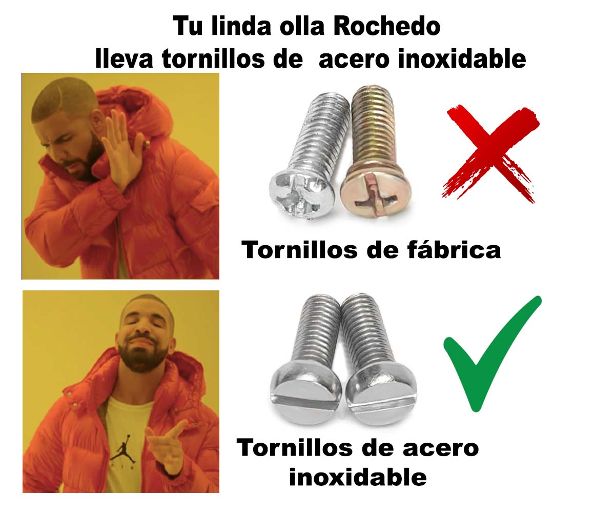 El empaque, se debe cambiar al menos a cada 2 años, que siempre tenga su elasticidad, podría afectar la seguridad en la ventana en caso de llegar a esa emergencia. Use el empaque adecuado al modelo de su olla. Para Rochedo hay empaques negros de modelos anteriores y empaques blancos para los modelos recientes. La Chimenea se limpia con una varilla después de casa uso, nos aseguramos que esté bien limpia, con agua tibia y jabón. La válvula de alarma y de seguridad, si apretamos ceden, eso quiere decir que están bien, si no ceden, están sucias, habría que desmontarlas, revisarlas o cambiarlas. El filtro, también hay que revisarlo que esté bien, para un buen funcionamiento.