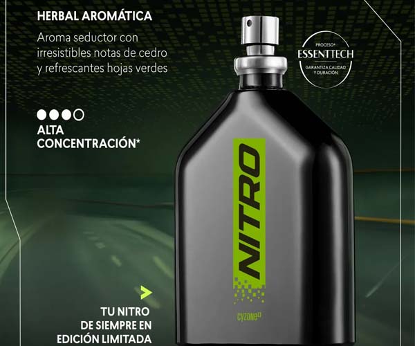 El Perfume para Hombre Nitro presenta su Edición Limitada, ideal para los que buscan acelerar su lado gamer y vivir la adrenalina a través de un aroma herbal irresistible. Con notas de cedro y hojas verdes, Nitro es TOP 1 en ventas de perfumes para hombre por su alta concentración y larga duración. Es perfecto para quienes disfrutan de aromas frescos y vibrantes. • Aroma herbal y refrescante con notas de cedro. • Alta concentración y duración de hasta 24 horas (Eau de Toilette). • Diseñado para el hombre moderno y seductor. Cantidad: 100 ml. NSOC11156-04CO.