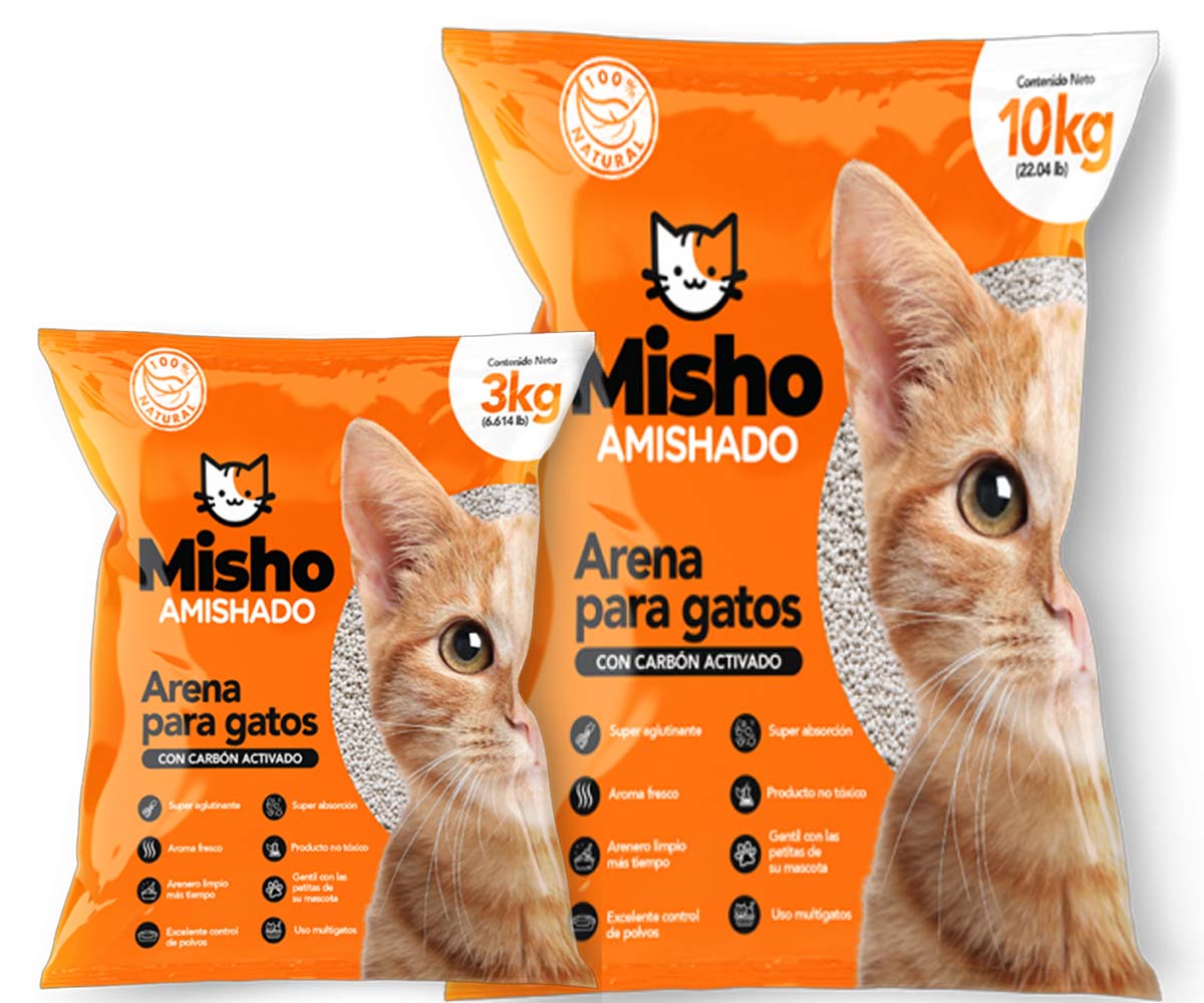 La arena para gato MishoAmishado, está formulada pensada en los exigentes gustos de cada gato. Promoviendo el bienestar de tu mascota y la tranquilidad que tanto mereces.