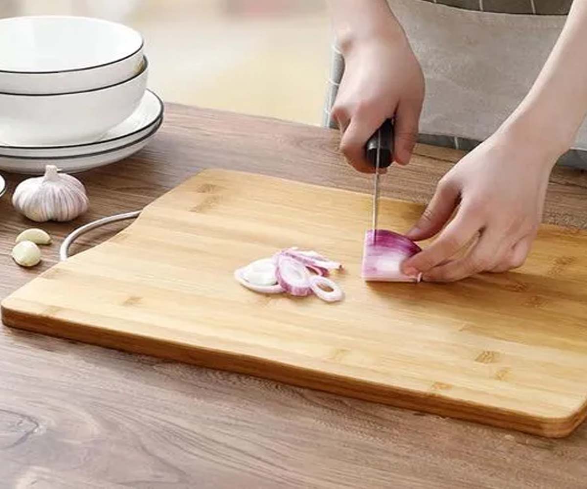 Linda tabla de picar, grande de bambú