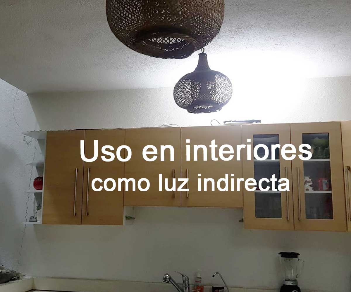 Para uso en interiores, 1) la primer ventaja es la calidad de iluminación blanca y fría, derivado que cubre más área que un foco convencional, usándola como luz indirecta te iluminarán muy bien y con estilo, en los "depas" que tienen balcón, serán una excelente opción, 2) la otra ventaja es la económica, debido a que no requiere inversión en más estructura, como baterías, convertidores, transformadores, reduciendo el pago de energía eléctrica. Lo que si es necesario es buscar los accesos al cableado para colocar el reflector en el lugar donde se necesite. 3) Se podrán alimentar varias lámparas con una sola panel, (ya lo comprobamos por tí, tu instalación será cero riesgos) liberando espacio en el techo y reduciendo el cable en el interior. 4) Se podrá usar el control remoto para aprovechar mejor la energía almacenada, programando el uso en la noche. 5) Versatílidad, podrás colocar las lámparas donde desees, incluye en pozos de gradas, pasillos, etc. 6) Se encenderán automáticamente al entrar la noche, podrás dejarlas encendidas toda la noche o por ciertas hora, especial para bodegas. 7) La vida útil de la lámpara será mas larga, debido a que no está expuesta a la lluvia, debido a que el agua eventual mente quema las baterías de litio.