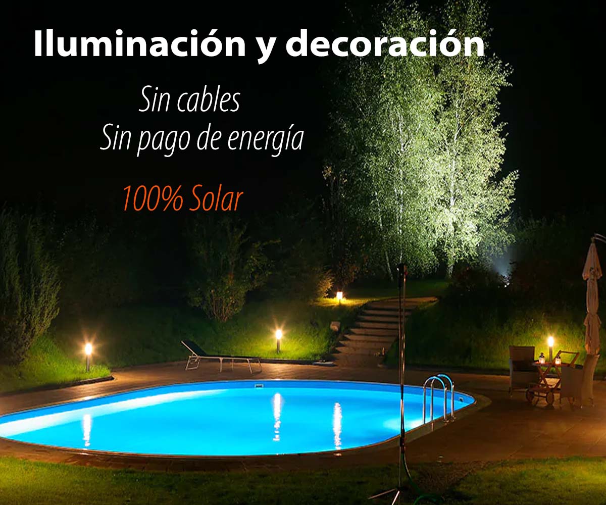 • Para uso en exteriores, pueden iluminar frentes de casas, caminos, entradas, pérgolas, programar el horario de uso o dejar luz fija toda la noche, una carga completa le aguanta 2 noches de iluminación.