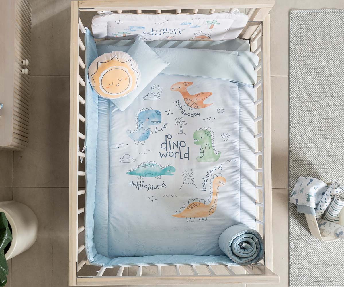 Mantén a tu bebé abrigado y cómodo con nuestro Edredón Baby T-Rex. Hecho de materiales suaves que ofrece un toque tierno y cálido para una noche de descanso perfecta. Ideal para la cuna de tu bebé.